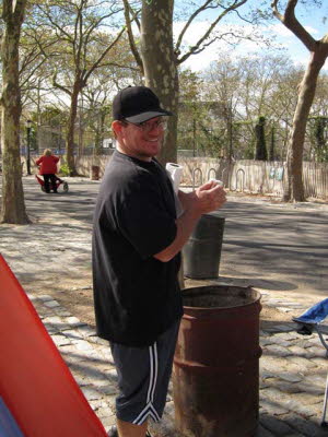 Simon K2FH operating portable QRP in Brooklyn Bridge Park
